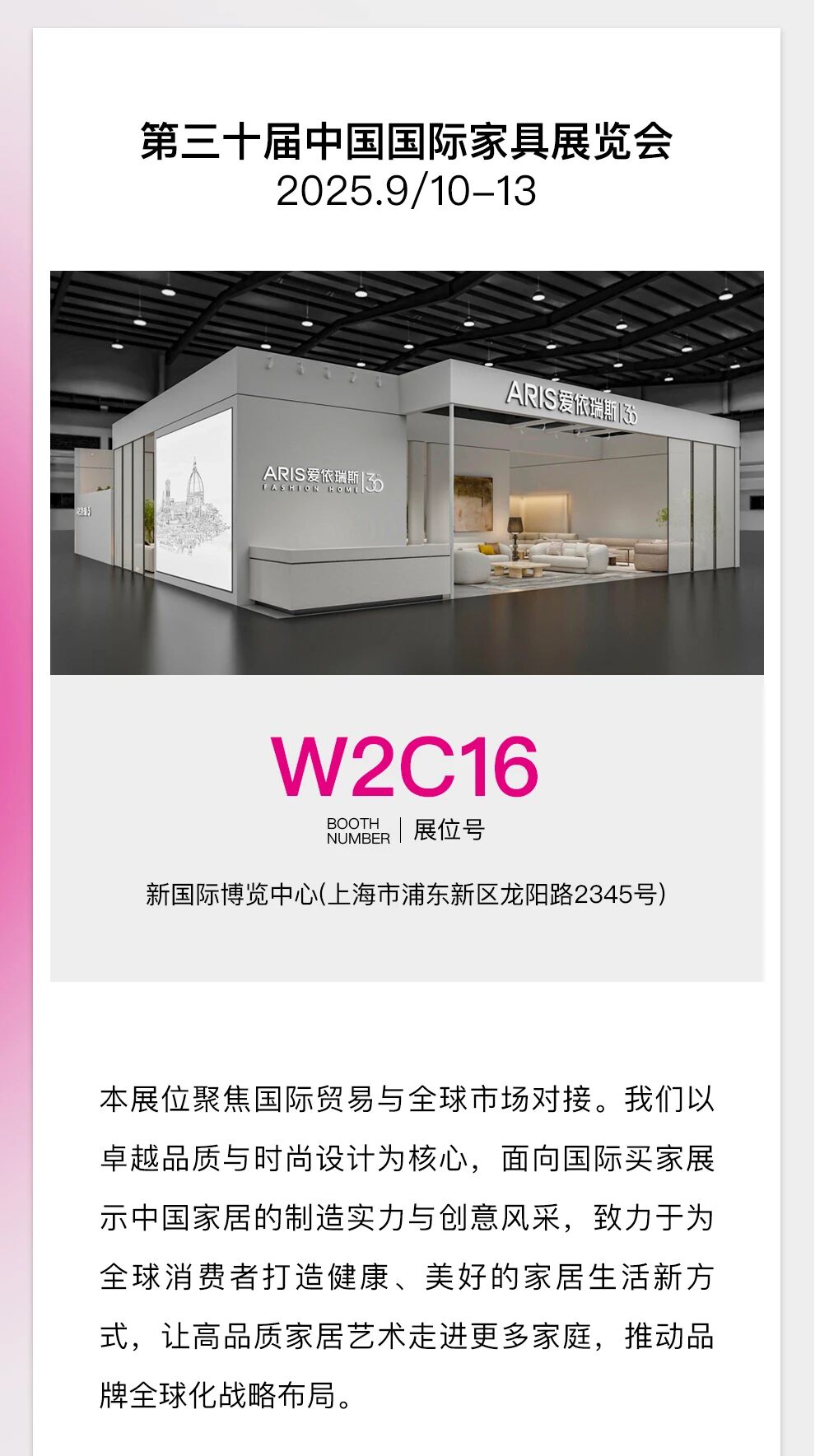 新聞資訊 當前位置:首頁 > 新聞資訊 > 愛依瑞斯三展協(xié)同即將亮相上海,共探家居美學