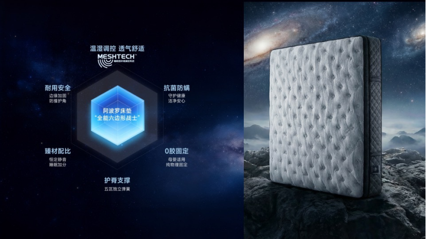 此次發(fā)布中,愛依瑞斯重點(diǎn)介紹的 MESHTECH睡眠微環(huán)境調(diào)控系統(tǒng),正是率先應(yīng)用于新品阿波羅床墊中的核心技術(shù)。相較于傳統(tǒng)床墊更多停留在軟硬度和支撐感層面的改善,MESHTECH更聚焦用戶在真實(shí)睡眠中普遍面臨的微環(huán)境困擾,例如剛躺下時(shí)遲遲難以放松、夜間悶熱出汗、濕氣滯留帶來的黏膩不適,以及因溫濕波動(dòng)引發(fā)的頻繁翻身、淺睡和睡眠中斷。